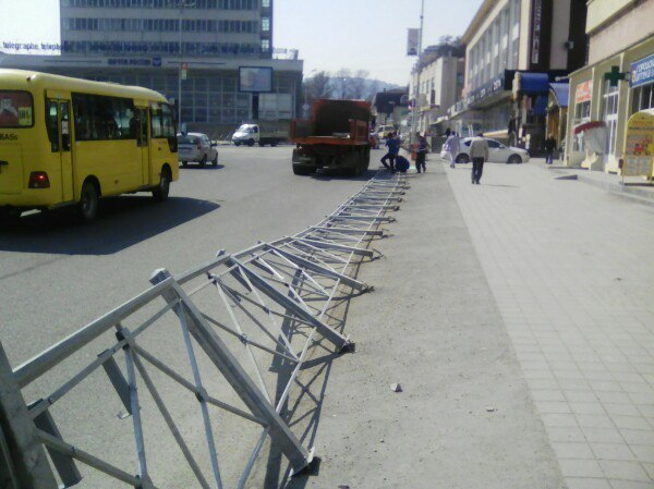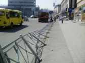 Плохо закрепленное дорожное ограждение завалилось на дорогу в Кисловодске