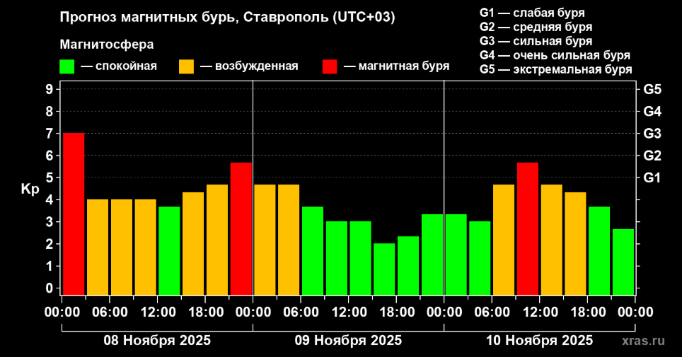 Волнения начались еще 7 ноября. Буря была самой сильной в 2025 году. Но быстро покидать регион она не планирует, поэтому некоторые жители ощутят недомогания 8 и 10 ноября. Сейчас магнитные возмущения достигают уровня G3. Но к вечеру снизится до G2. На том же уровне она окажется и в понедельник. А виной всему выброс плазмы.