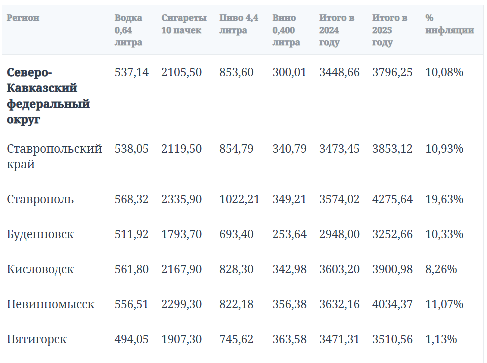 Где дороже всего пить и курить в Ставропольском крае, выяснили аналитики