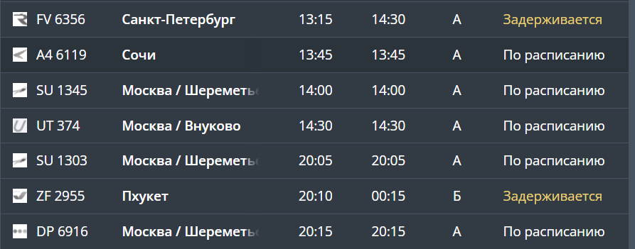 А вот с прилетом немного сложнее, там проблема возникла сразу у 4 рейсов. Встречающие ждут авиалайнеры из Еревана, Москвы, Перми и Пхукета.
