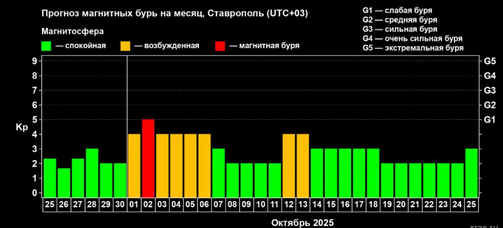 Волнения начнутся с первого дня нового месяца, а уже второго числа придет магнитная буря уровня G1. Следующие 4 дня колебания продолжат преследовать жителей Ставрополья. Потом после небольшой передышки, недомогания вернутся 12 и 13 октября. Вторая половина месяца обещает быть спокойной.