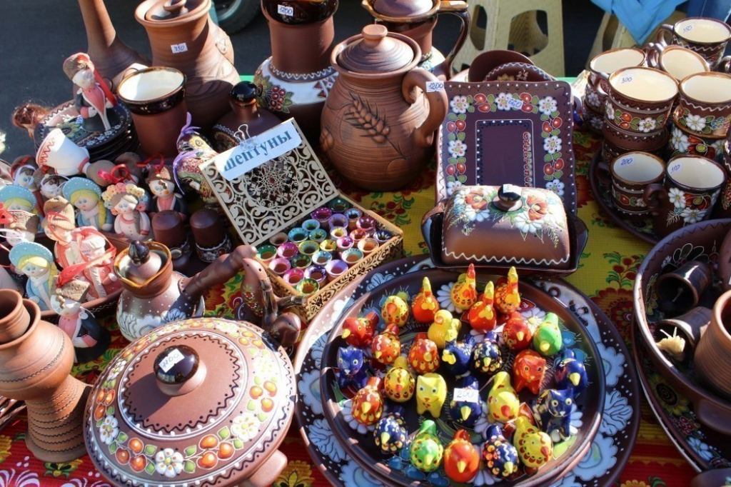 С раннего утра на площадке для массовых мероприятий разместились торговые ряды. Местные сельхозпроизводители и перерабатывающие предприятия Ставропольского края выставили на продажу свою продукцию: овощи, фрукты, ягоды, мясо, мёд, а также посуду и сувениры ручной работы.
