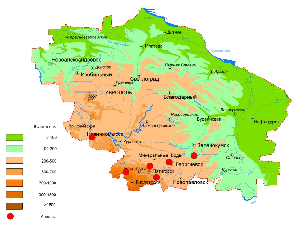 Территория распространения растения, схема с сайта минприроды СК