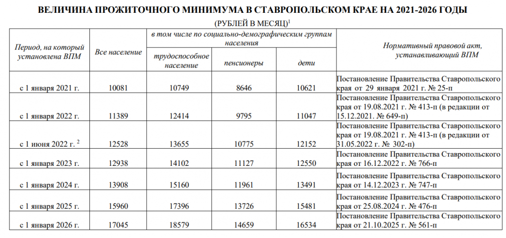 Рост прожиточного минимума в Ставропольском крае — сравнение 2021 и 2026 годов