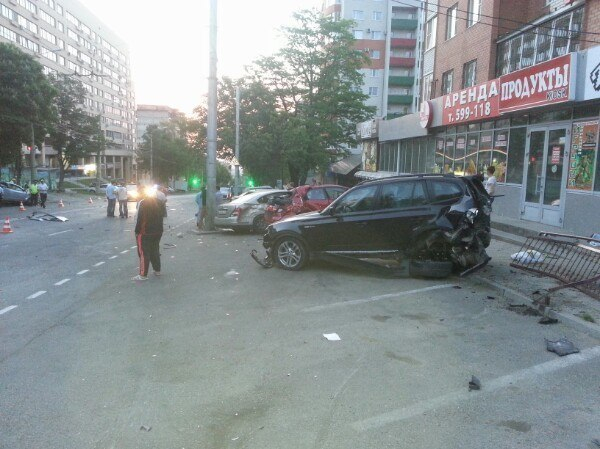 В результате БМВ, Хонда, Ниссан, Хендай, Шевролет и Мазда оказались разбитыми в хлам. После этого авто-виновник аварии вылетел на встречку и, столкнувшись с бордюрным камнем, выехал за пределы проезжей части и попал в опору линии электропередач. После столкновения 33-летний пассажир авто скончался на месте до приезда скорой помощи, а 23-летний водитель попал в больницу с тяжелыми травмами.