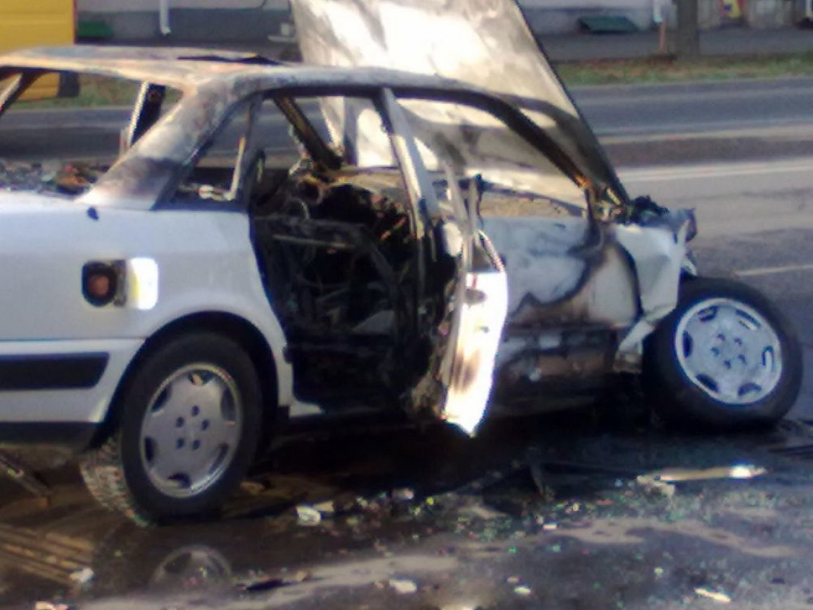 В результате ДТП - иномарка сгорела.
