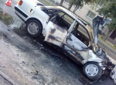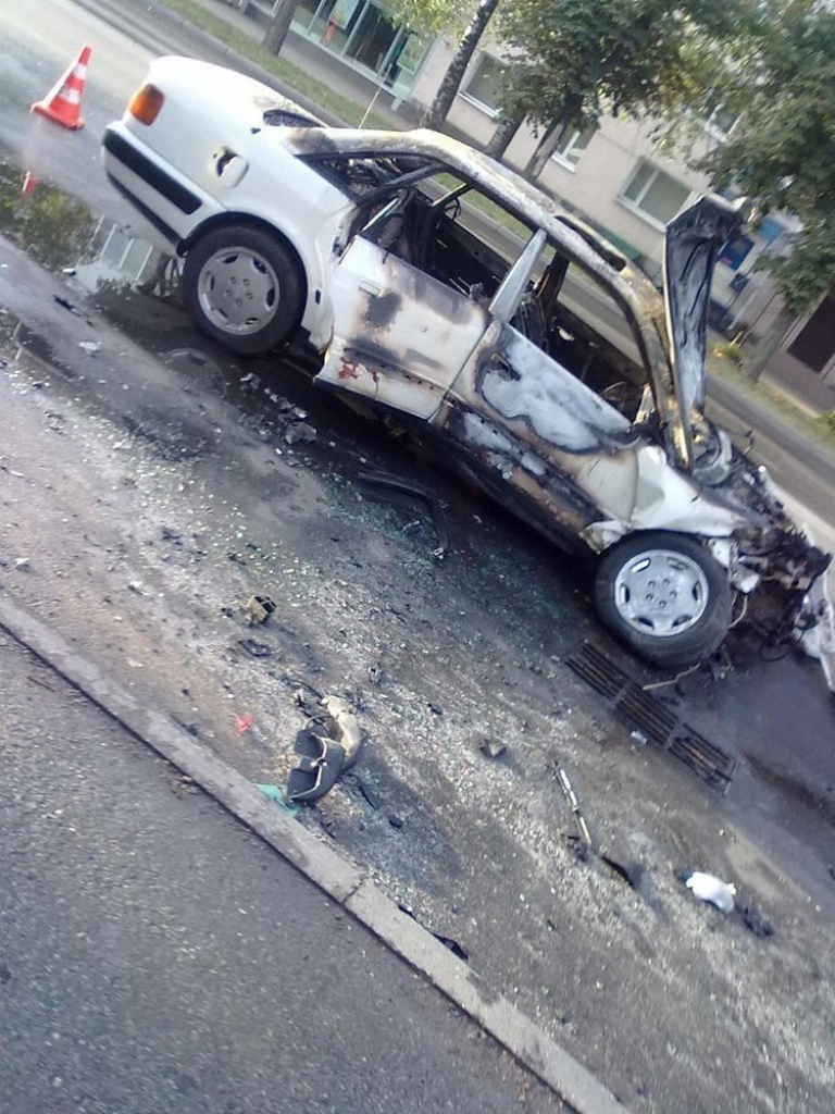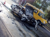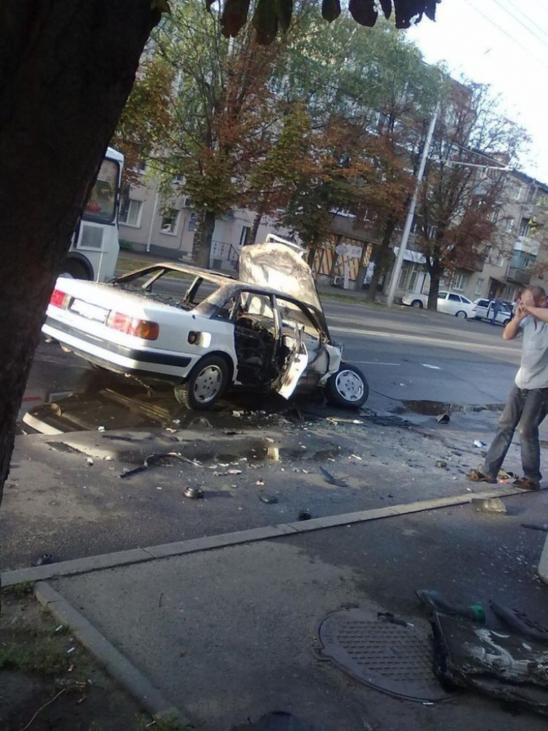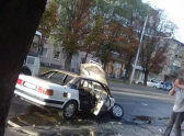 В пять утра на перекрестке Ленина-Пржевальского столкнулись в лобовую автомобили "Ауди" и такси "Рено". По словам очевидцев, "Ауди" ехала на большой скорости и не вписалась в поворот. В результате столкновения, машину отбросило на 30 метров, после чего она вспыхнула.