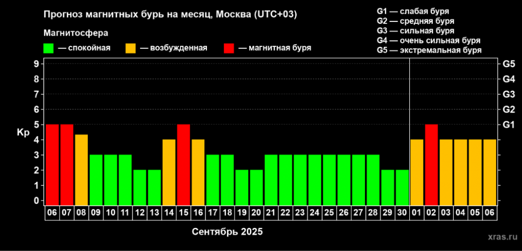 Следующий всплеск геомагнитной активности ожидается 14 сентября. После этого, согласно прогнозам, наступит спокойный период вплоть до начала октября — можно будет восстановиться и собраться с силами.